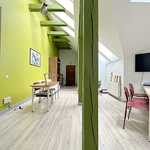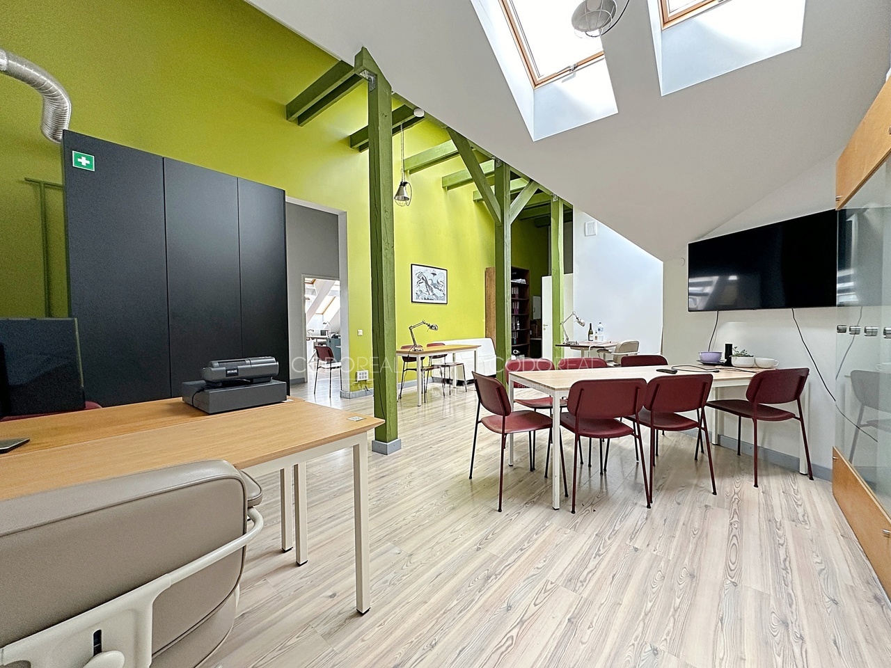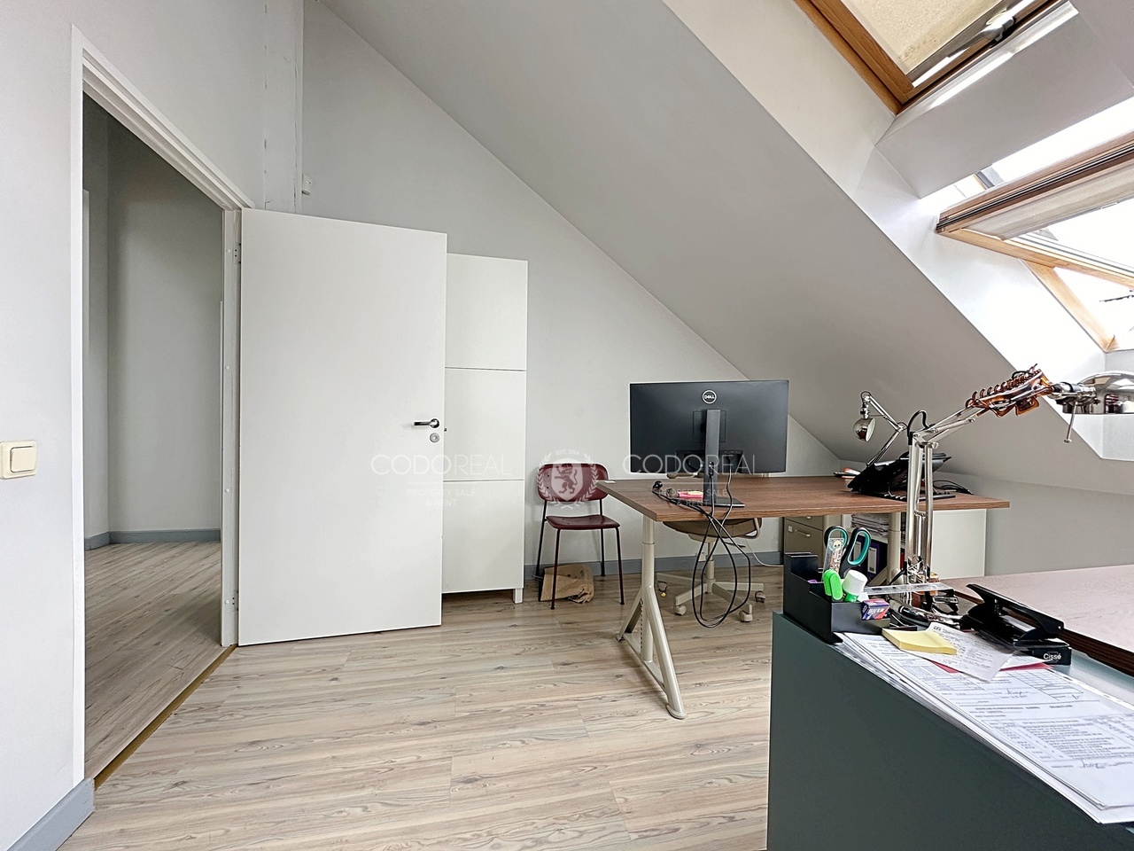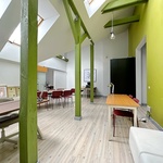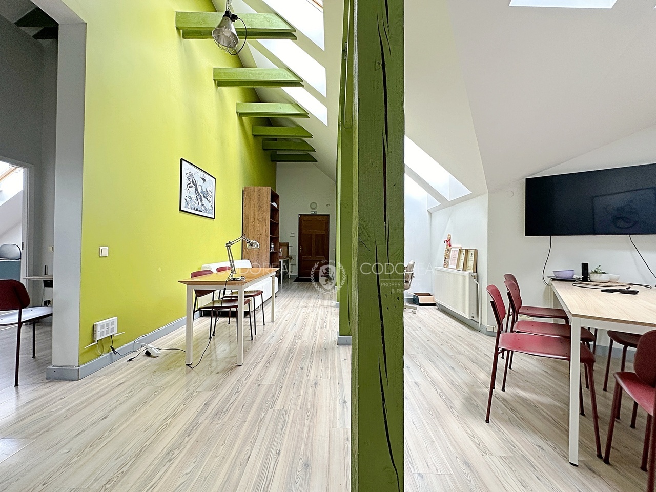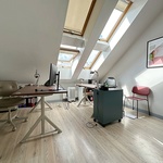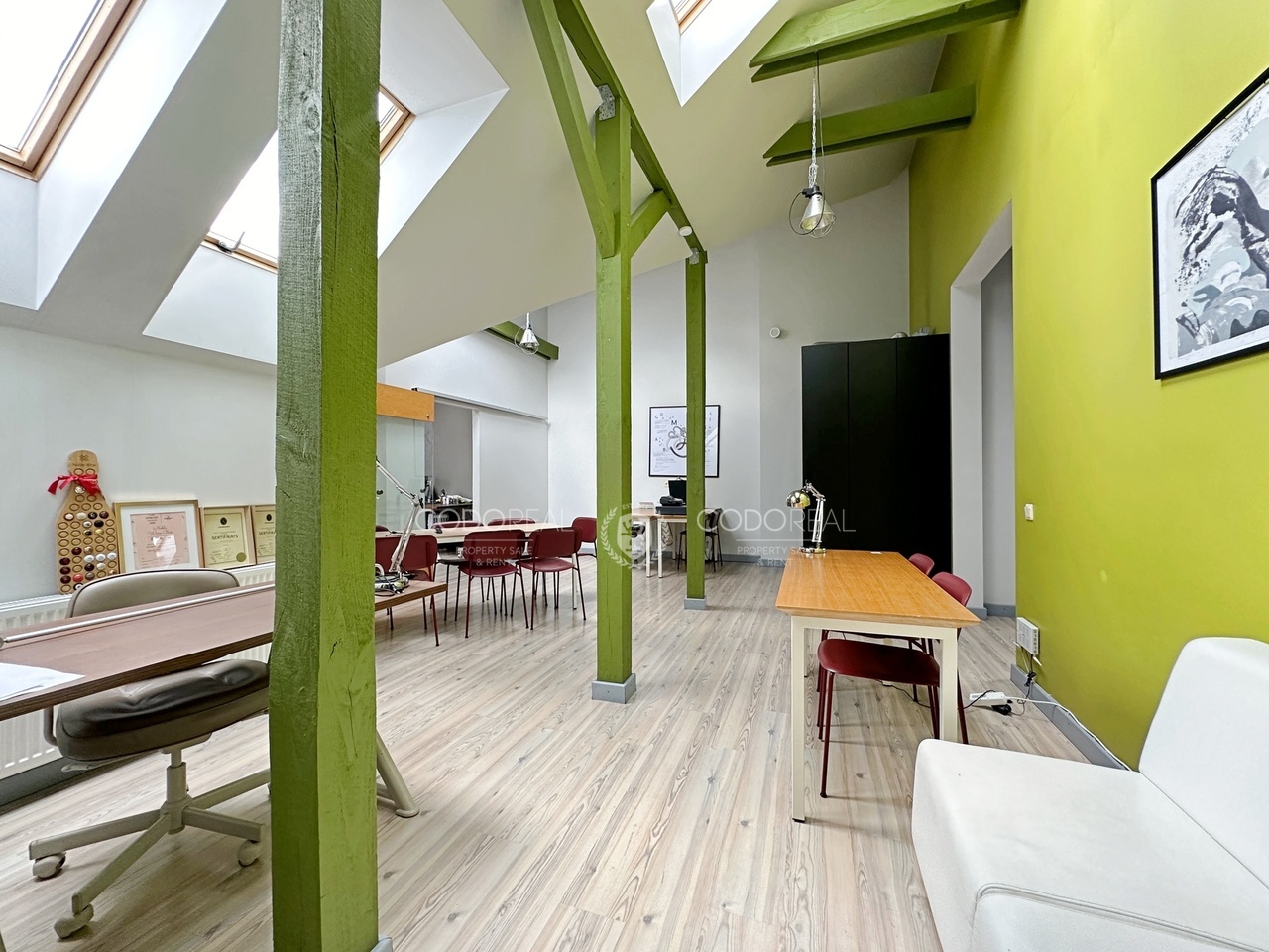 Dzīvoklis atrodas mansarda stāvā – kopējā platība 101 m2 – 4 istabas – daudz glabāšanas vietu – griestu augstums līdz 6 metriem kas dod iespēju izbūvēt otro līmeni un palielināt dzīvojamo platību – pa visu dzīvokļa perimetru ieklātas siltās grīdas – individuālais gāzes apkures katls ļauj ekonomiski regulēt apkuri jebkurā sezonā – dzīvoklis ir ļoti silts gaišs un kluss
