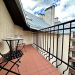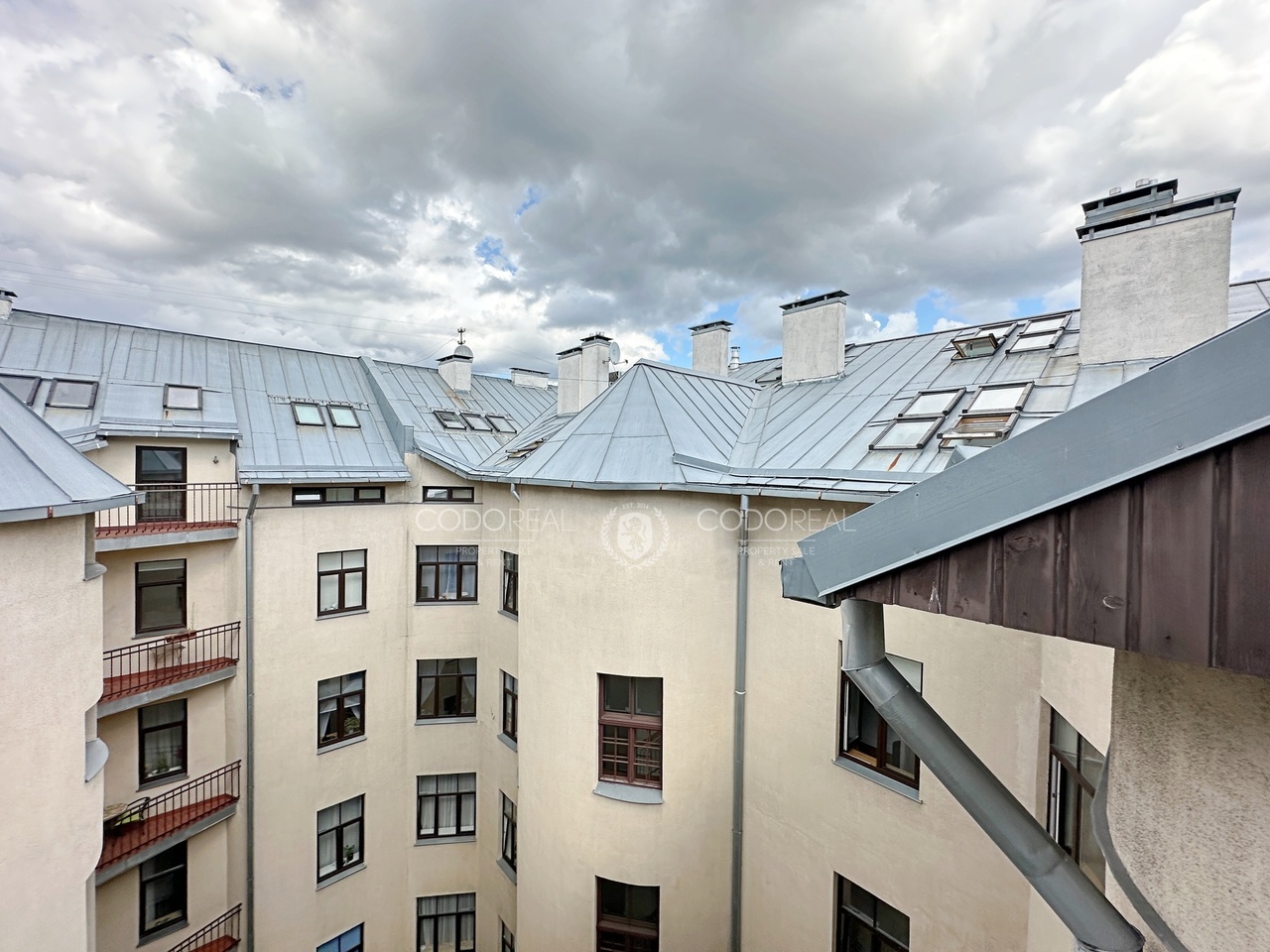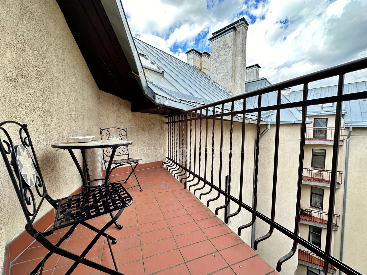 Gandrīz uz ēkas jumta atrodas mājīgs balkons no kura iespējams baudīt saullēktus un saulrietus kas Rīgas vēsturiskajā centrā ir liels retums