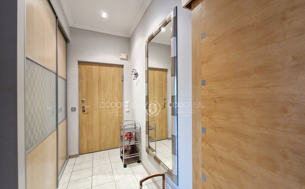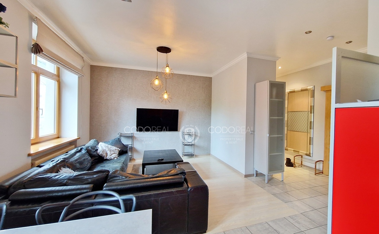 Dzīvoklis ir aprīkots ar visu nepieciešamo dzīvošanai, pilnībā mēbelēts, iebūvēta virtuve ar sadzīves tehniku, pārdomāts un ērts plānojums. Dzīvoklī ir veikts kvalitatīvs remonts, nomainītas inženierkomunikācijas, koka logi, dēļu grīda.