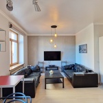 Pa viesistabas logiem paveras brīnišķīgs skats uz Pēterbaznīcas skvēru.